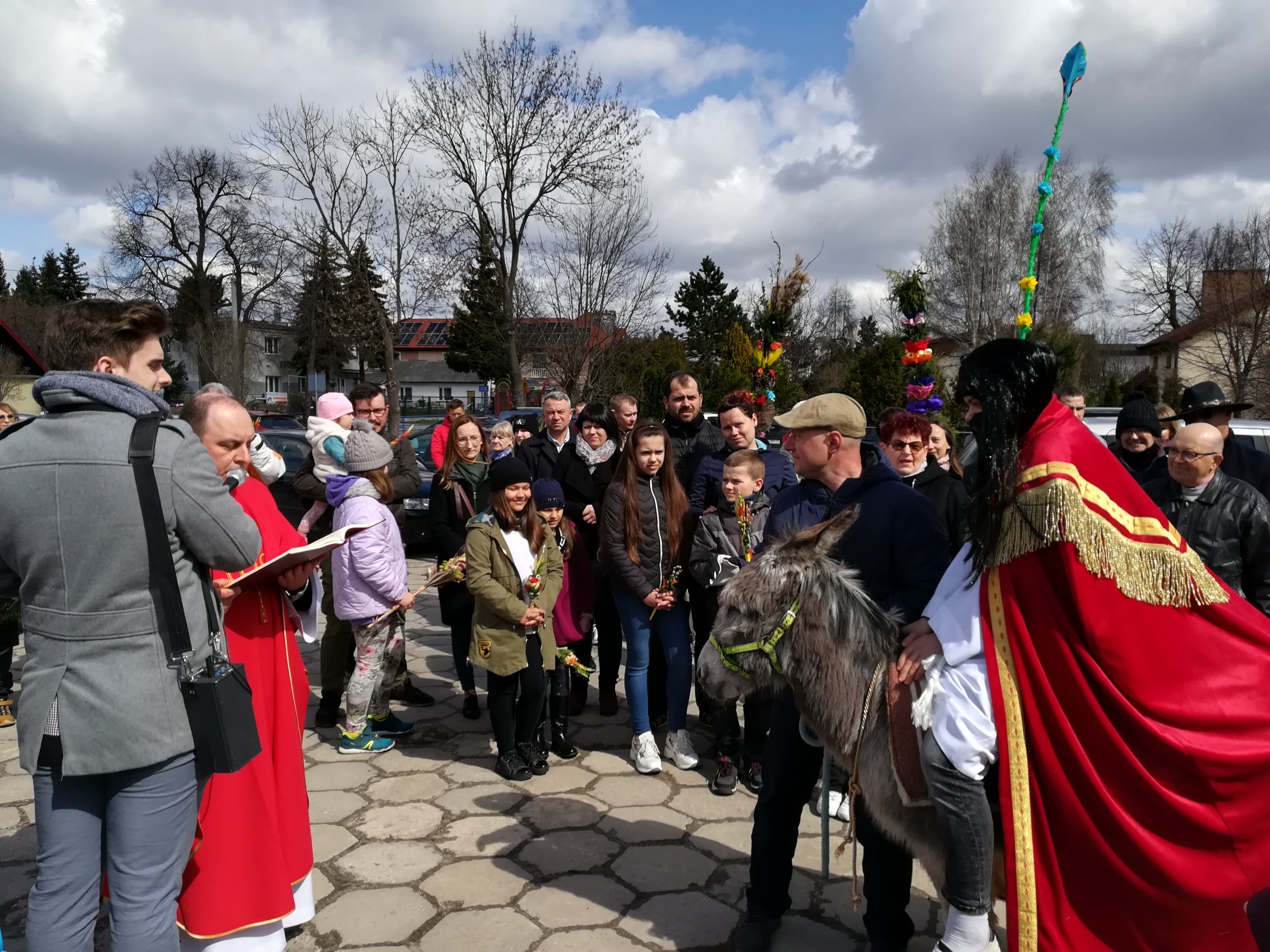 Wjazd Jezusa do Jerozolimy opisali wszyscy Ewangeliści (Mt 21,1-11; Mk 11,1-11; Łk 19,29-40; J 12,12-19). Będąc w okolicy Betfage, Chrystus polecił swoim dwóm uczniom, by poszli do pobliskiej wsi i przyprowadzili znajdującego się tam osła (w Ewangelii św. Mateusza mowa jest o oślicy i osiołku). Na pytania, czemu to robią, Jezus kazał im odpowiedzieć: Pan go potrzebuje. Gdy to zrobili, Chrystus dosiadł osiołka i na nim wjechał do Jerozolimy. Lud wyszedł mu na spotkanie, słał pod nogi płaszcze i gałązki, wykrzykując: Hosanna! Błogosławiony Ten, który przychodzi w imię Pańskie. Błogosławione królestwo ojca naszego Dawida, które przychodzi. Hosanna na wysokościach! Wydarzenie to miało być spełnieniem słów ze Starego Testamentu: Raduj się wielce, Córo Syjonu, wołaj radośnie, Córo Jeruzalem! Oto Król twój idzie do ciebie, sprawiedliwy i zwycięski. Pokorny – jedzie na osiołku, na oślątku, źrebięciu oślicy
